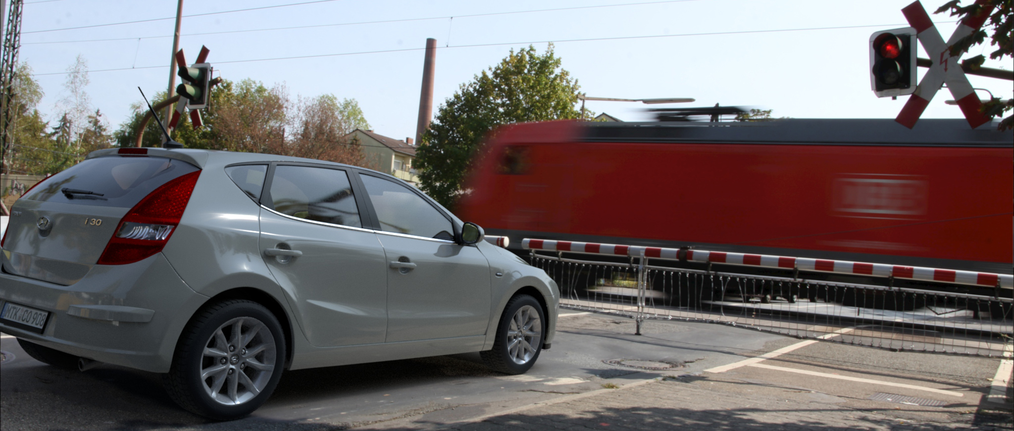 This is a simple rendering of a Hyundai i30 waiting at a closed railraod gate in Frankfurt (near Frankfurt’s Klassikstadt). Rendering by C. Malerczyk & H. Arlt