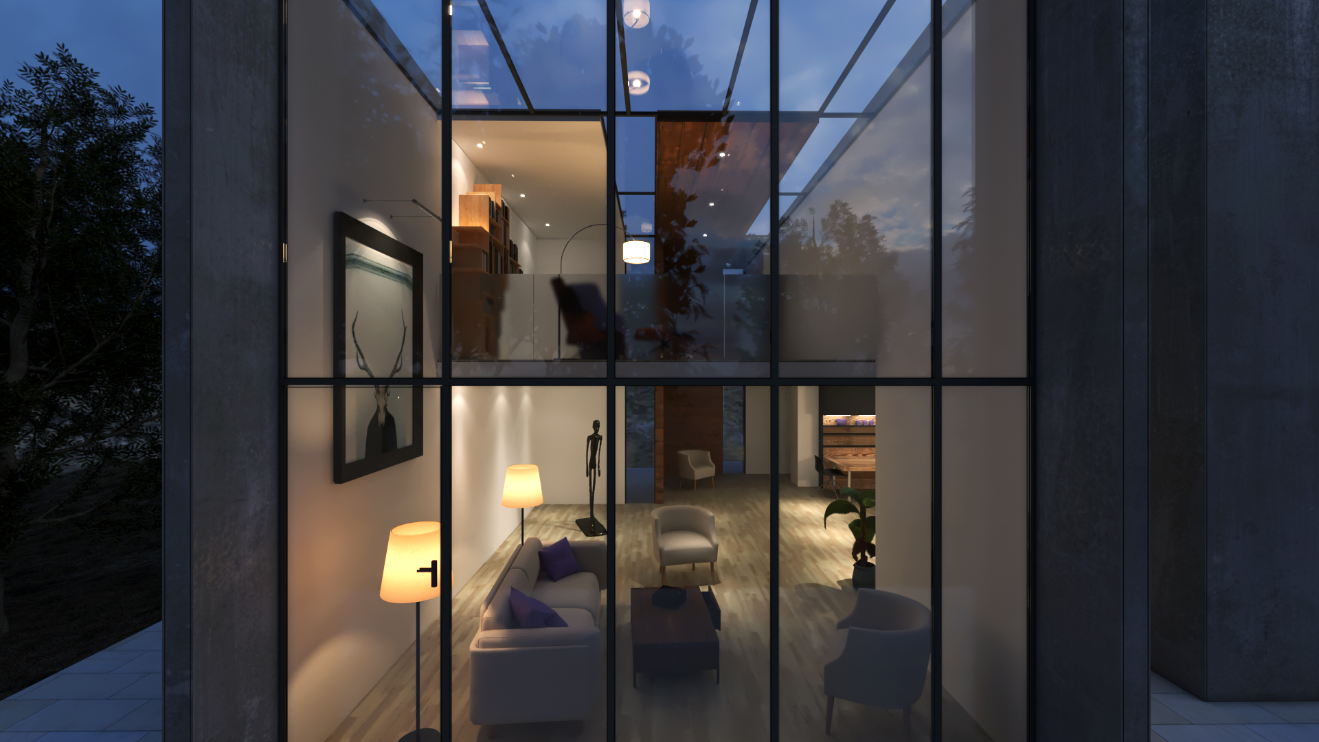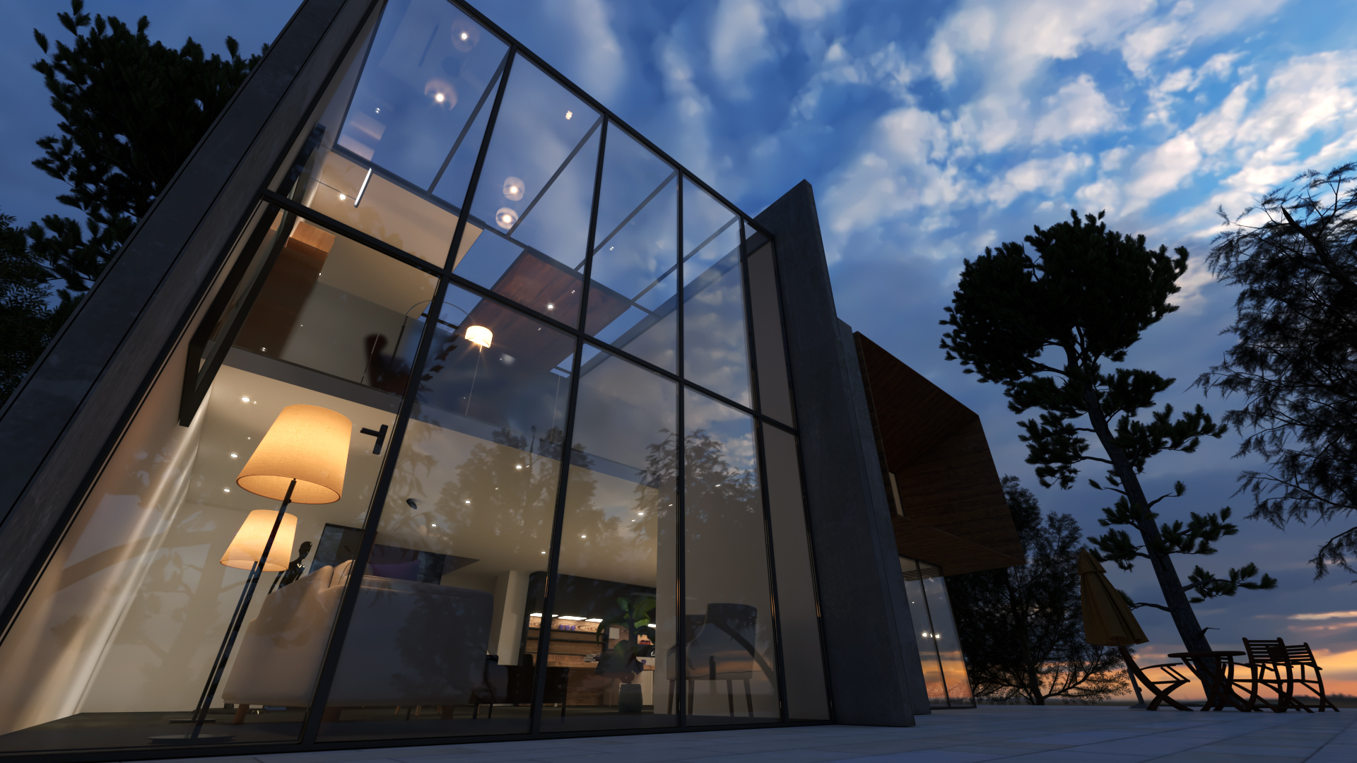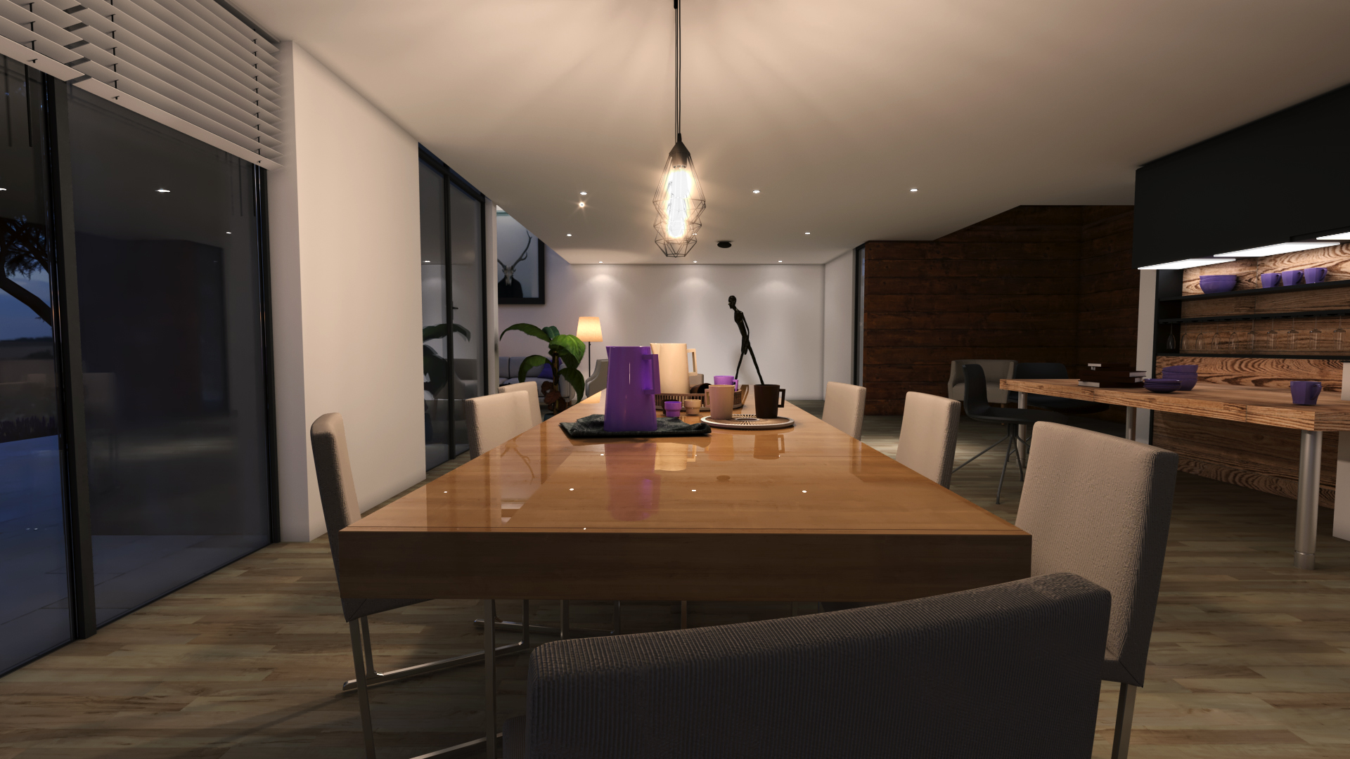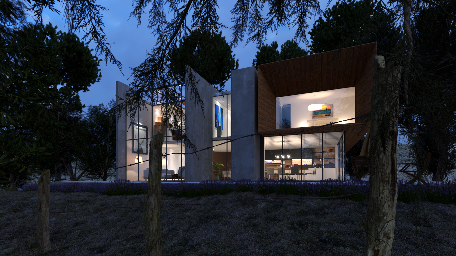 The idea and inspiration for this project was to create a rendering of a modern residence located somewhere in the Mediterranean area. Even if difficult to see at first, the villa’s terrace is surrounded by lavender bushes with their typical scent. The subtle purple of the lavender is repeated inside of the building with some assets of the same color such as cushions, blankets or dishes in the kitchen.