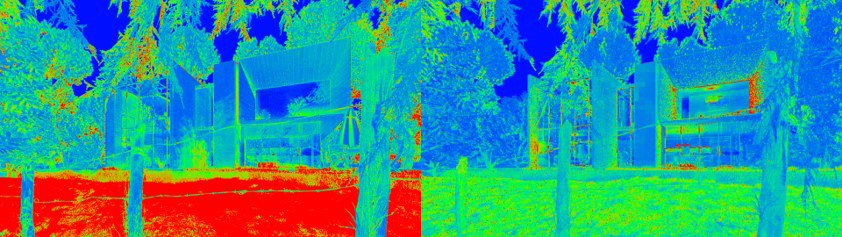 There are no backplates used for the renderings. The resolution of the HDRIs are with 8k high enough to be used for rendering the background. Nevertheless, compositing was necessary. For all renderings Ambient Occlusion layers were rendered as VRayDirt extra textures and multiplied into the renderings in Photoshop. Additionally, Crytopmatte layers were used for individual corrections such as the brightening of a single tree or to change the saturation of the wood material.