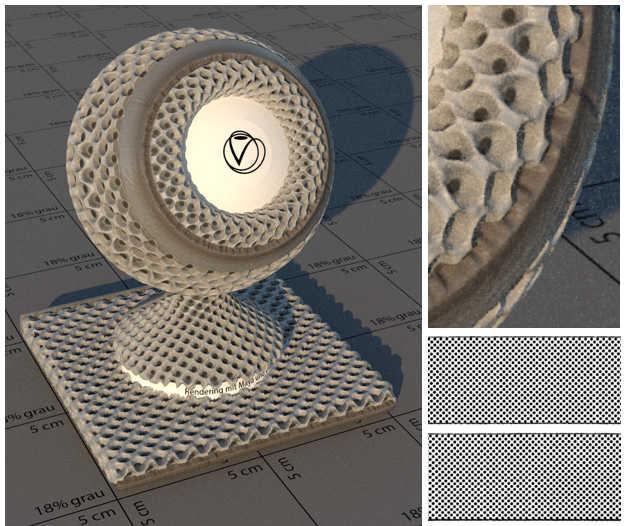 Some additional filtering had to be done to generate the maps for building the shader of the perforated metal plates.